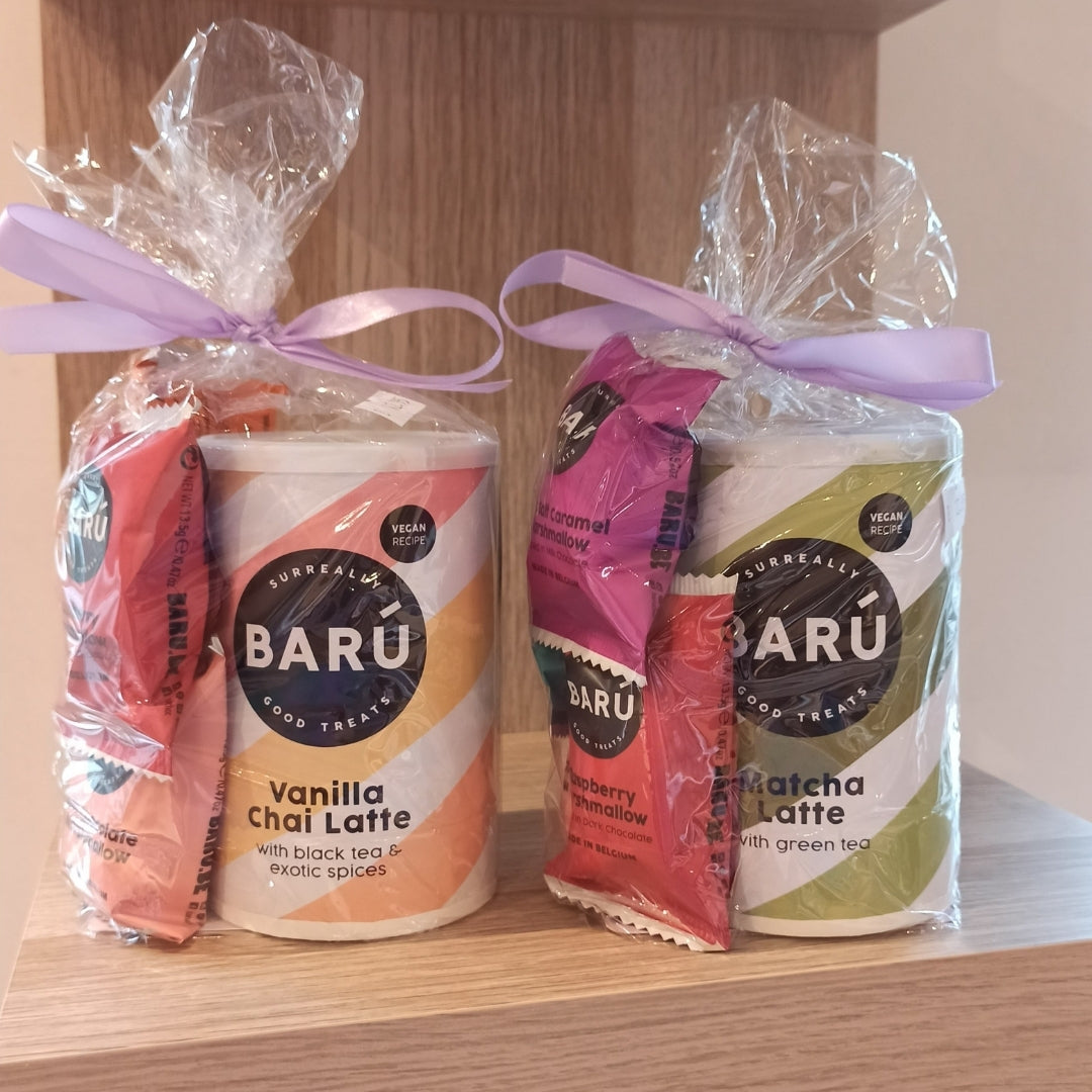 Een zorgvuldig samengesteld geschenkzakje met een heerlijke Barù latte of chocomelk, aangevuld met zachte marshmallows. Perfect voor een rustmoment, een pauze na een lange dag, of als liefdevol gebaar voor iemand die altijd maar doorgaat.
